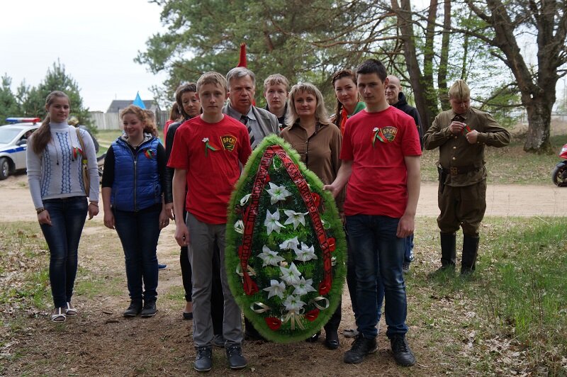 Прибыв на место, участники пробега, в числе которых присутствовал и Валерий Козлов, секретарь районной ветеранской организации, возложили венки и цветы к братской могиле. Вероника Подоляк, первый секретарь РК ОО «БРСМ», рассказала о боях, проходивших в этой местности и подвигах людей, похороненных в этой земле. В знак глубокого уважения и благодарности за мирное небо над головой присутствующие почтили минутой молчания героев, до последней капли крови защищавших Бобруйщину.