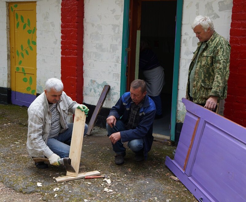 Работники районного Центра культуры в этот день с песнями и различными рабочими инструментами готовили Дом культуры в Телуше к летнему сезону, а заодно и к приближающемуся празднику Пушкинской поэзии.