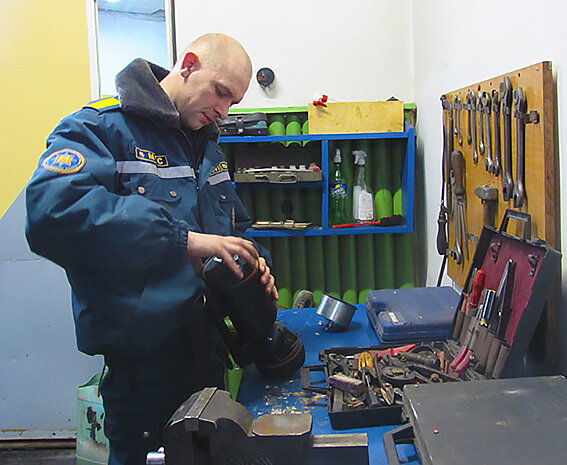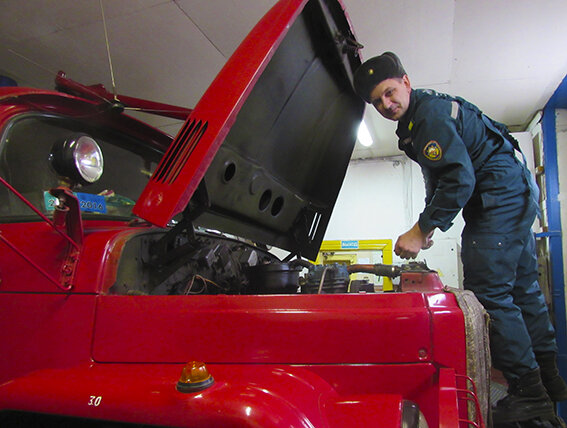 Задача водителя — следить за исправностью техники и ее боеготовностью. Нужно отметить, что ЗИЛ-131 — это не просто цистерна с водой. Здесь есть все необходимое оборудование для устранения последствий ДТП — деблокировки пострадавших с помощью гидравличес­ких инструментов, бензореза и др. Кстати, вмес­тимость этой машины составляет 2,5 тысячи лит­ров. Что касается МАЗа, то вместимость его цистерны — 5,8 тонны, а мощность пожарного насоса — 40 литров в секунду. Свой самый первый выезд молодой человек помнит очень хорошо — это было дорожно-транспортное происшествие с летальным исходом. Говорит об этом неохотно. Признается, что даже спустя много времени, вспоминать об этом нелегко.