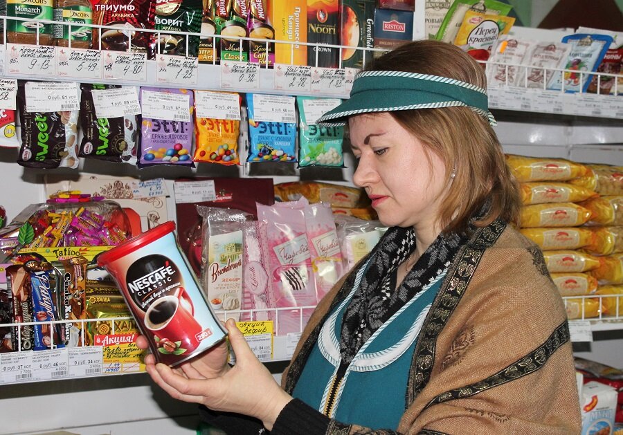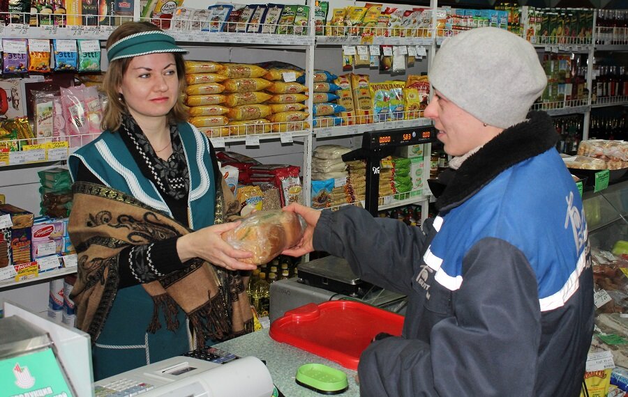 Мне предстояло провести один день по ту сторону прилавка, поэтому волнение нарастало по мере приближения к торговому объекту. В магазине нас встретила заведующая — приветливая Пелагея Гущина, которая и стала моей наставницей в освоении этой интересной профессии. К слову, стаж работы в торговле у Пелагеи Федоровны — 13 лет. Два года подряд (2014 и 2015 г.г.) ей присваивалось звание «Лучший по профессии» в районном соревновании по социально-­экономическому развитию района.