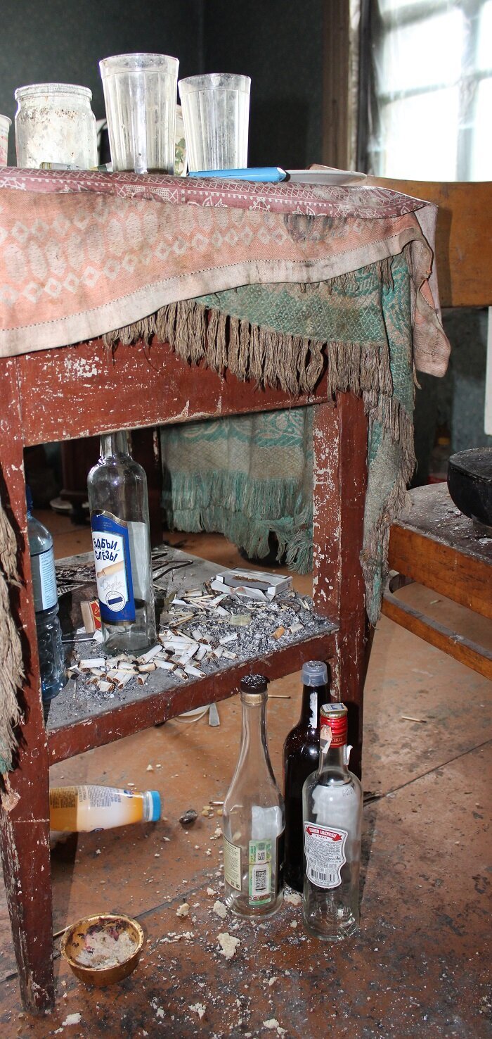 Из нехитрого быта — обшарпанные стены, поломанный диван или кровать, горы тряпья по всему дому, как правило, неисправная печь, провода на скрутках, если еще не отключено за неуплату электричество, отсутствие пожарного извещателя. Запах в помещении — зловонная смесь перегара, дыма дешевых сигарет, немытой посуды. А самое главное — абсолютно безалаберное отношение к своей безопасности. Вот вам основная причина многих пожаров и смертей на них, когда человек целенаправленно делает все, чтобы с ним случилось непоправимое.