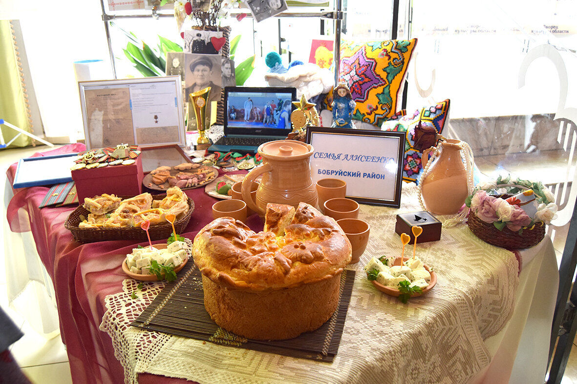 Праздник начался еще в фойе. На больших столах  семьи демонстрировали зрителям и жюри свои увлечения и достижения, воплощенные в поделках из подручного материала, вышивках, рисунках, спортивных наградах, кулинарных изделиях. Виталий Васильевич и Ольга Александровна с детьми выступали под №9. Со сцены рассказали о семейных традициях, об истории рода, о жизненных ценностях и целях. Прекрасное музыкальное оформление «визитной карточки» и видеофильм с хроникой важных семейных событий сделали выступление ярким и незабываемым. Легко и непринужденно держались на сцене 4 дочери супругов Алисеенко ─ Виктория, Варвара, Василина и малышка Валентина.