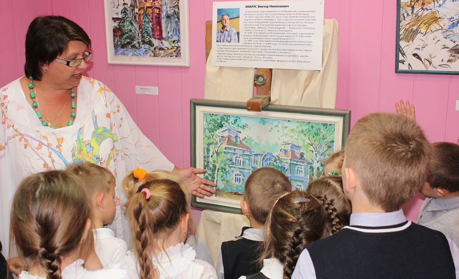 На презентации выставки сотрудники библиотеки Жанна Плышевская и Светлана Гриценко рассказали присутствующим об основных исторических вехах Бобруйска, который в этом году отмечает свое 630-летие. После чего Виктор Кнарус пригласил всех в свою мини-галерею. Для школьников была проведена экскурсия, где ребята продолжили узнавать интересные факты из прошлого города.