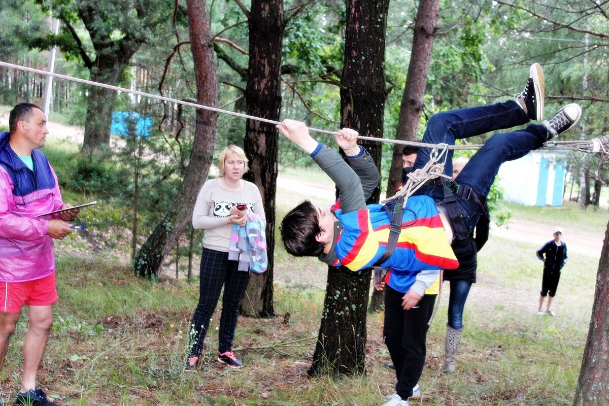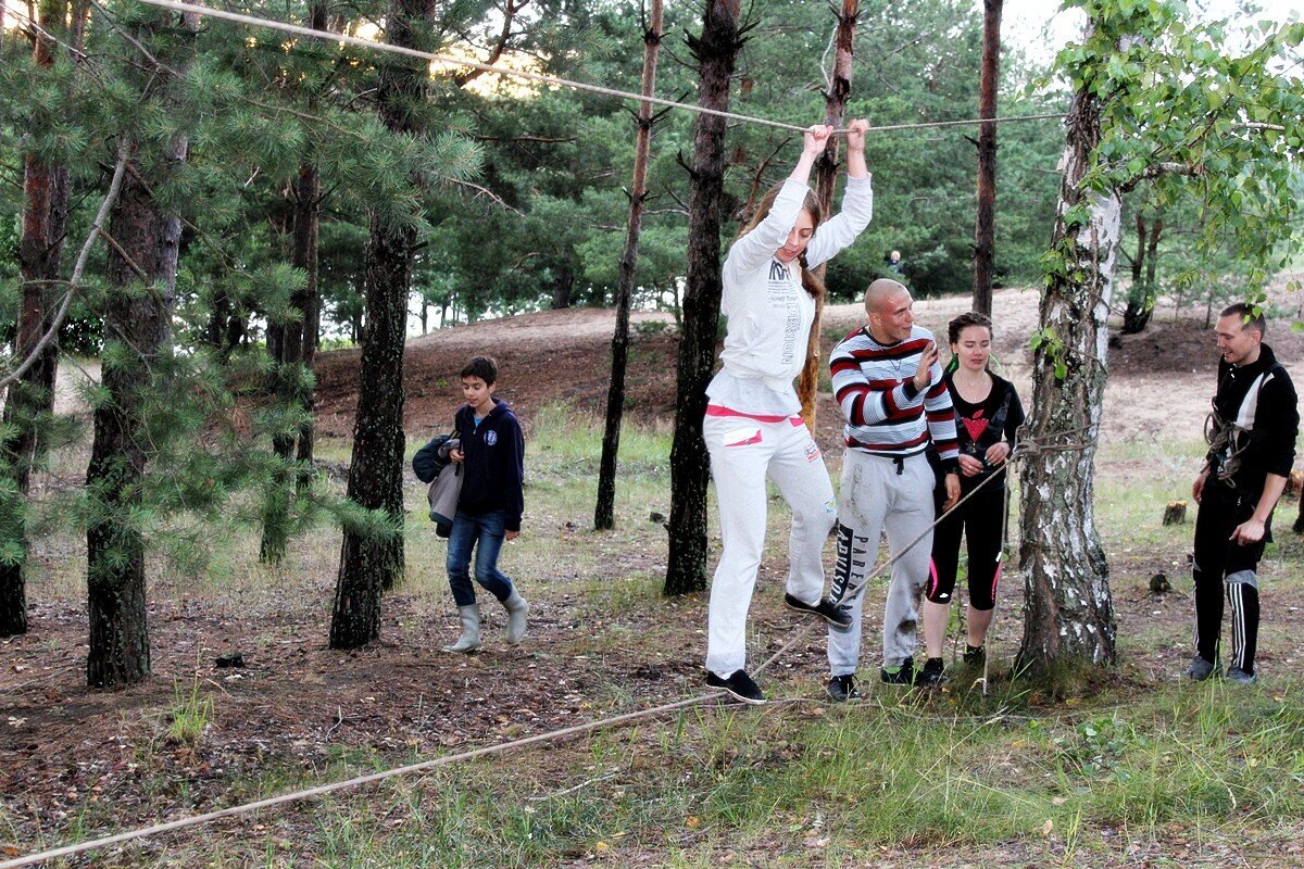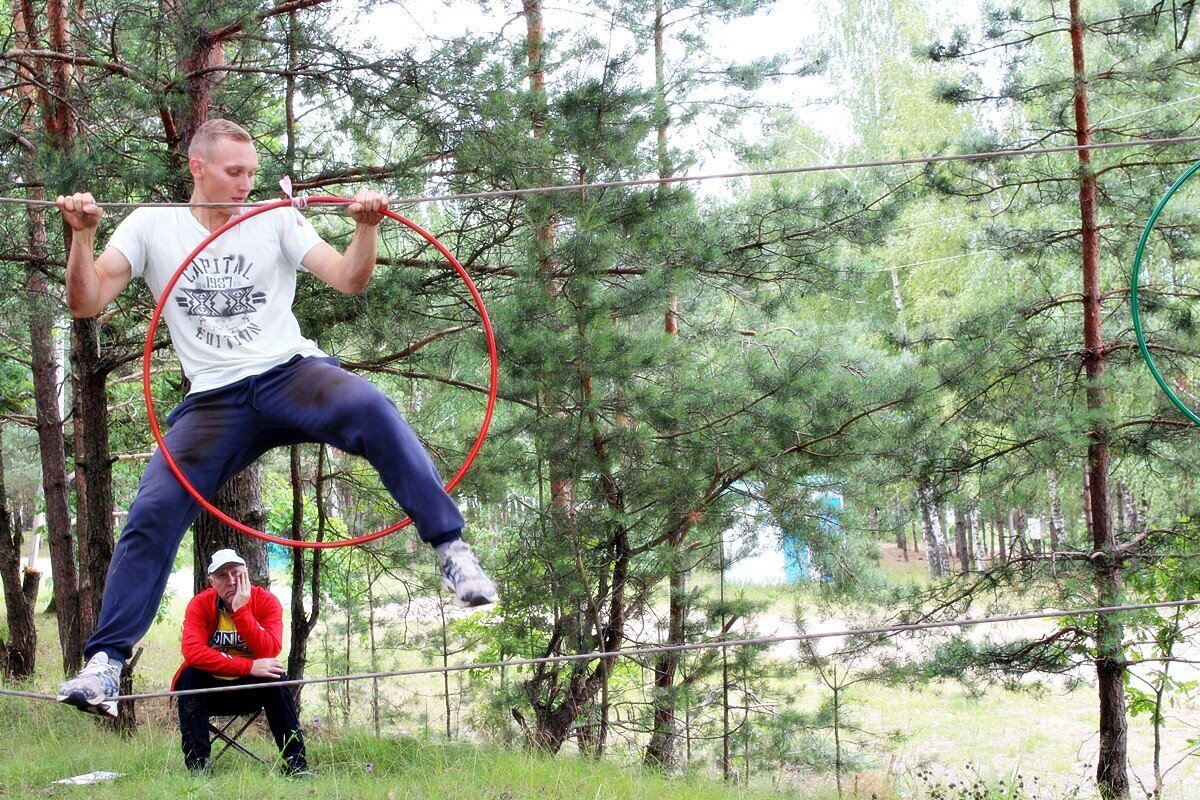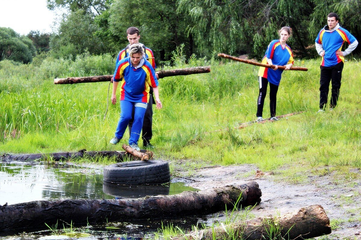 Программа первого дня началась с соревнования по туристско-прикладному многоборью в технике пешеходного туризма. И пусть при преодолении препятствий ноги увязали в мокром песке и кроссовки откровенно напоминали коньки — такой скользкой была трава после дождя, удовольствие это соревнование доставило неимоверное. Потом еще долго обсуждали, как участник одной из команд набрал воды в обувь при прохождении гати, а другой — чуть не сломал толстый дубовый сук, старательно выполняя маятник…