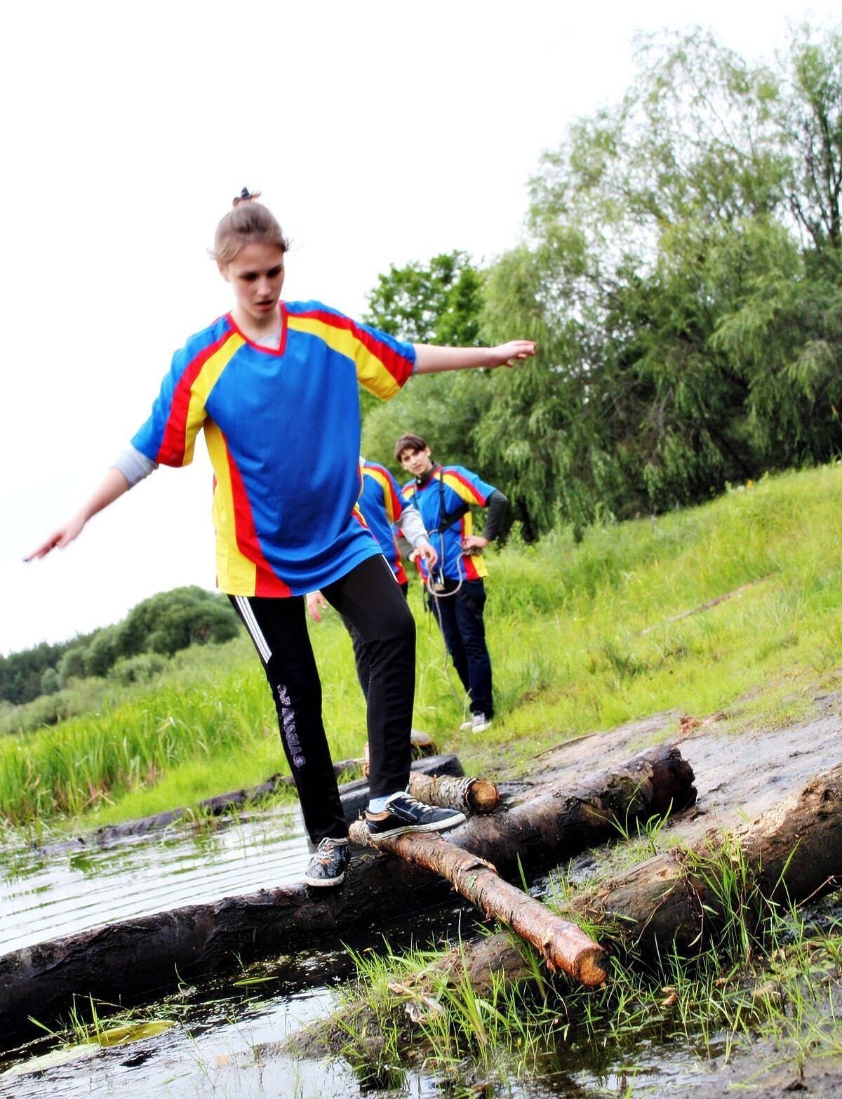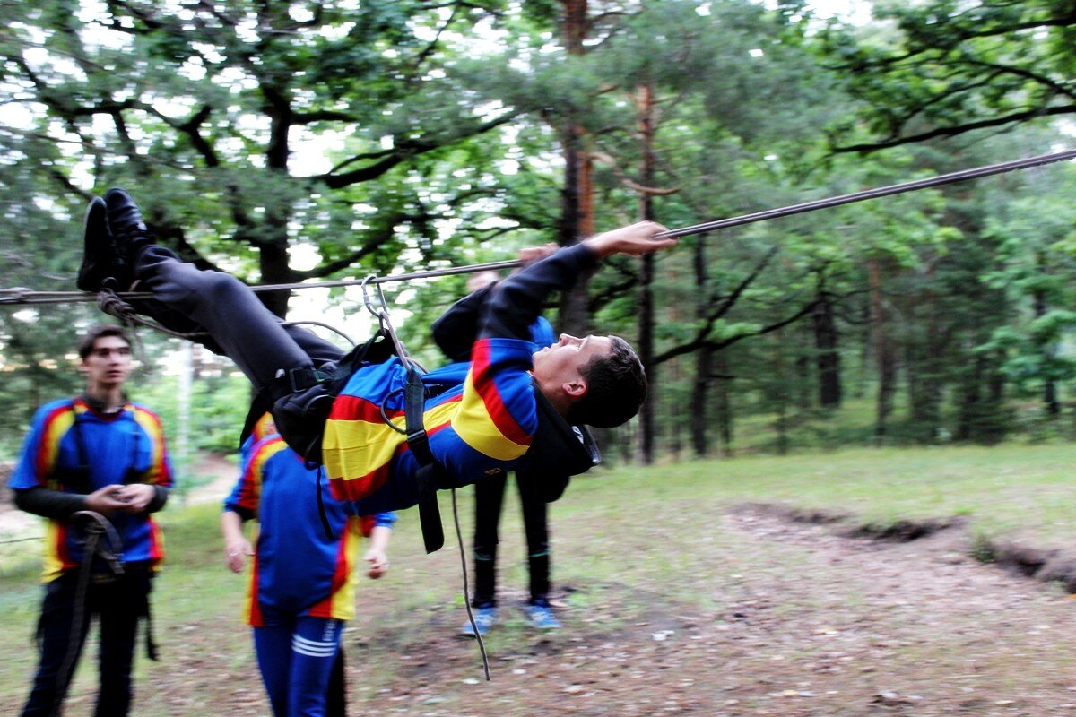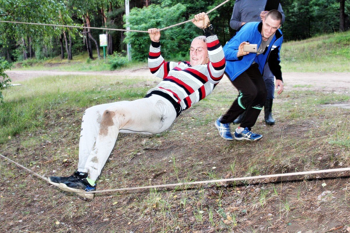 Программа первого дня началась с соревнования по туристско-прикладному многоборью в технике пешеходного туризма. И пусть при преодолении препятствий ноги увязали в мокром песке и кроссовки откровенно напоминали коньки — такой скользкой была трава после дождя, удовольствие это соревнование доставило неимоверное. Потом еще долго обсуждали, как участник одной из команд набрал воды в обувь при прохождении гати, а другой — чуть не сломал толстый дубовый сук, старательно выполняя маятник…