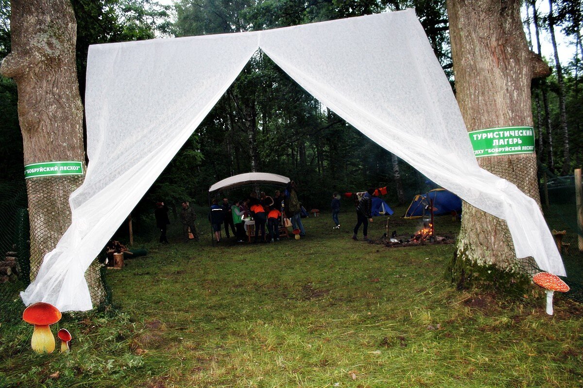 День пятницы как-то не задался — с самого утра лил дождь, оттого настроение было на нуле. Тяготила не столько погода, сколько ее последствия: главное событие лета для туристов — слет среди рабочей молодежи организаций и учреждений района — был под угрозой срыва. Но сжалилась погода над страждущими приключений жителями Бобруйщины. Аккурат к тому моменту, когда надо было выезжать к урочищу Белый Берег, а именно там по традиции и должен был проходить турслет, небо посветлело, и дождь прекратился. Поэтому даже тот факт, что палатки пришлось ставить на мокрую землю, никого не расстроил, ведь впереди были целые сутки туристической жизни, конкурсов и приключений.