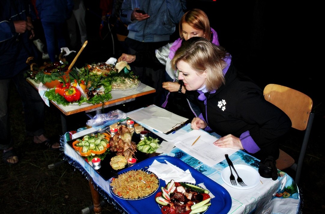 Параллельно с многоборьем проходил конкурс туристского быта, где, помимо общего вида бивака, его санитарного состояния, оценивалось театрализованное представление, эстетичес­кое оформление, устройство костра, а также поведение участников турслета в лесной зоне. В конкурсе туристской кухни, который в этом году носил название «Кухня народов мира», каждая команда представляла на суд жюри блюдо. При этом учитывались его оригинальность, вкусовые качества и представление. На поляну попеременно выходили то роботы, то переодетые в деревенских красавиц парни, то мультяшные герои, чтобы ярче представить основную идею приготовленного блюда.