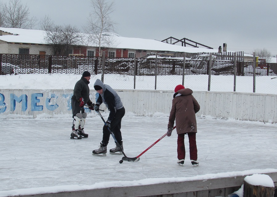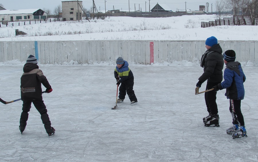 С прошлого года ледовая коробка в центре населенного пункта стала важным спортивным центром для сельчан. Сотрудники райгазеты решили посетить Каменку. На момент нашего визита по ровной поверхности льда с клюшками скользили примерно 15 детишек разных возрастов. Юные хоккеисты тренировались под присмотром местного жителя В.Г. Шушлякова, который с хоккеем дружит с детства и приобщает к своему увлечению и местную детвору.