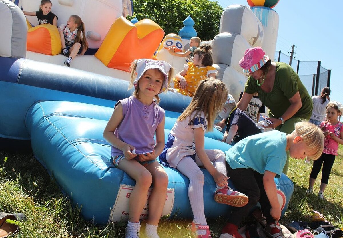 После завершения праздничной программы, проходившей в помещении, организаторы подготовили еще один сюрприз ребятишкам, который ожидал их во дворе приюта — это был большой надувной аттракцион и батут, где могли порезвиться все желающие. Не трудно догадаться, что желающими оказались буквально все подопечные заведения.