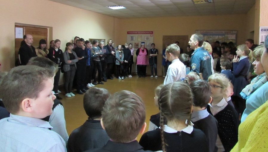 Для закрепления знаний все участники акции получили наглядно-изобразительную продукцию – буклеты, наклейки, закладки, календари. А завершающим этапом дня стала эвакуация из здания учащихся и персонала, в ходе которой оттачивались важные навыки: как действовать по сигналу тревоги, кто должен выходить из класса последним, на кого ориентироваться, как действовать, если недосчитались кого-то из учащихся, не успевших покинуть здание. Как отмечают представители МЧС, поскольку общая схема эвакуации отрабатывается на школьных занятиях, все больше учащихся воспринимают такого рода учебные тренировки не как игру, а как алгоритм действий в случае чрезвычайной ситуации.