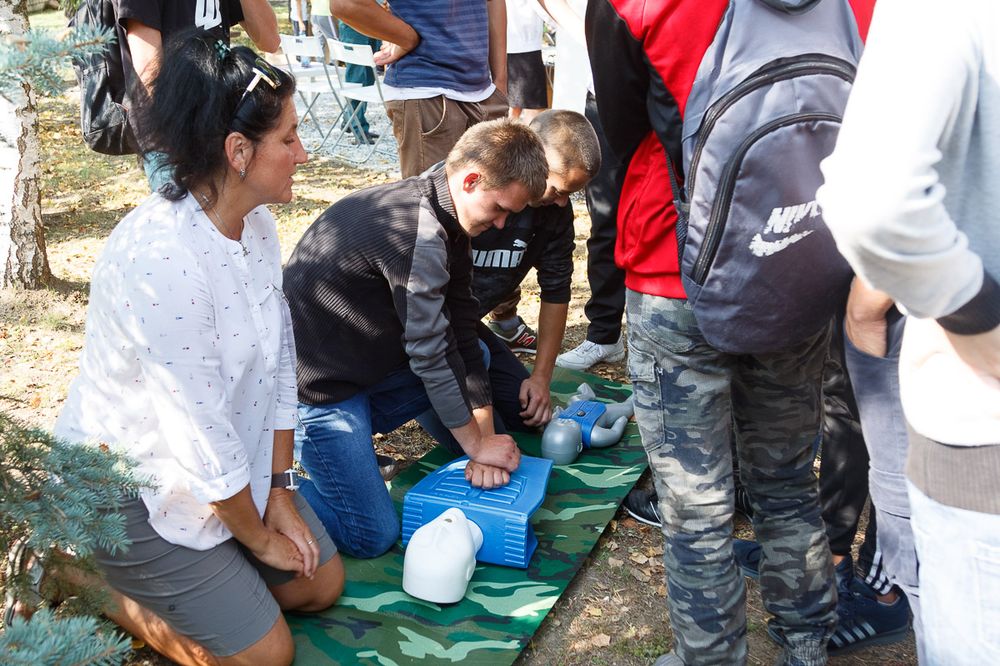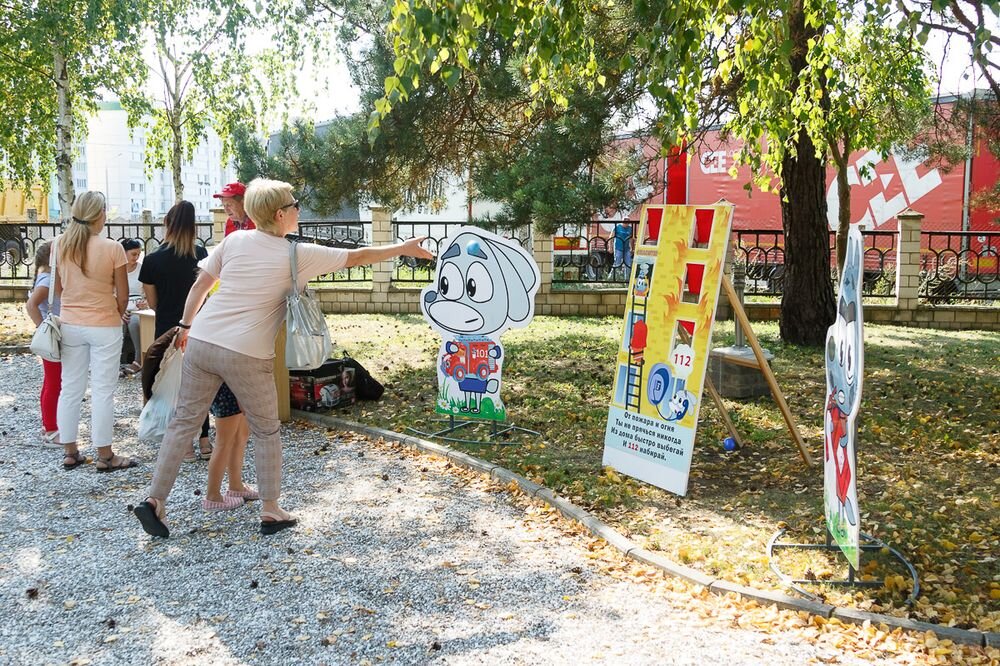 После обеда для всех жителей города было организовано развлекательное мероприятие. Все желающие могли посетить сквер, в котором ждали инспекторы сектора пропаганды и взаимодействия с общественностью. Спасатели организовали в сквере множество тематических площадок с интерактивными играми и викторинами, такие как «Угадайка», противопожарный хоккей, раскраски, крестики-нолики, «Потуши пожар», фотозона в стиле «Волшебная книга». Поиграть и обучиться правилам безопасности могли как дети, так и их родители. А можно было поучаствовать и всей семьей, например, в игру «Эвакуация» или одевание боевой одежды. Также полезными и познавательными были площадки от Красного креста «Первая доврачебная помощь» и площадка Белорусского добровольного пожарного общества.
