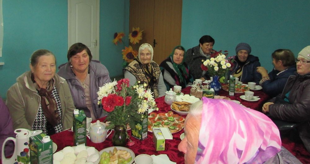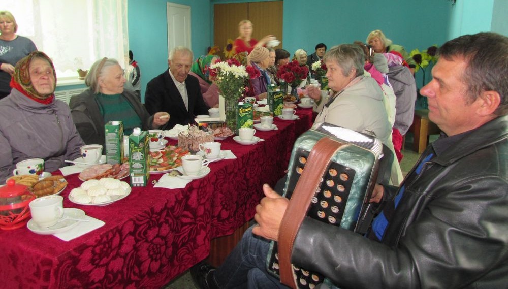 За святочным сталом, даўжынёй у палову ўнушальнага фае клуба, сабраліся жыхары аграгарадка, чый узрост дазваляе знаходзіцца на заслужаным адпачынку.
