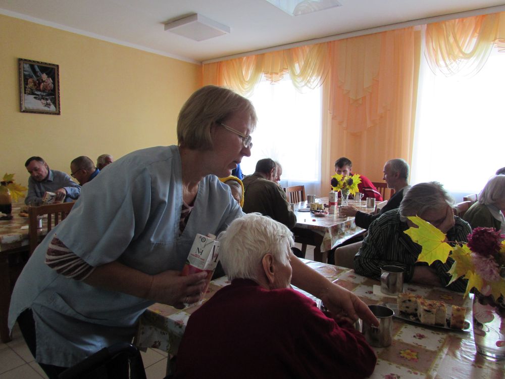 Каб задаць святочнасць дню, для падапечных установы быў наладжаны “салодкі стол” з сокамі, розных відаў печывам, цукеркамі і галоўным, як мне падалося, для бабуль і дзядуль пачастункам — салодкім духмяным караваем.