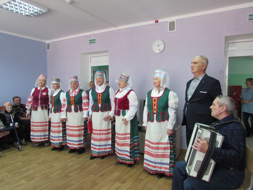 Бабулі і дзядулі аддзялення кругласутачнага знаходжання для грамадзян пажылога ўзросту і інвалідаў Бабруйскага раённага цэнтра сацыяльнага абслугоўвання насельніцтва, куды наведаліся ў панядзелак раённыя артысты — вакальная група “Гармонія” клуба для пажылых людзей “Аптыміст” — і вучні Брожскай сярэдняй школы, з замілаваннем прымалі з рук дзетак кветкі і вырабленыя ўласнаручна паштоўкі, весела падпявалі знаёмыя з дзяцінства заліхвацкія песні, краем хустачак выціралі вочы падчас гучання звязаных з домам і маладосцю мелодый і шчодра адорвалі гасцей падзякамі і апладысментамі.