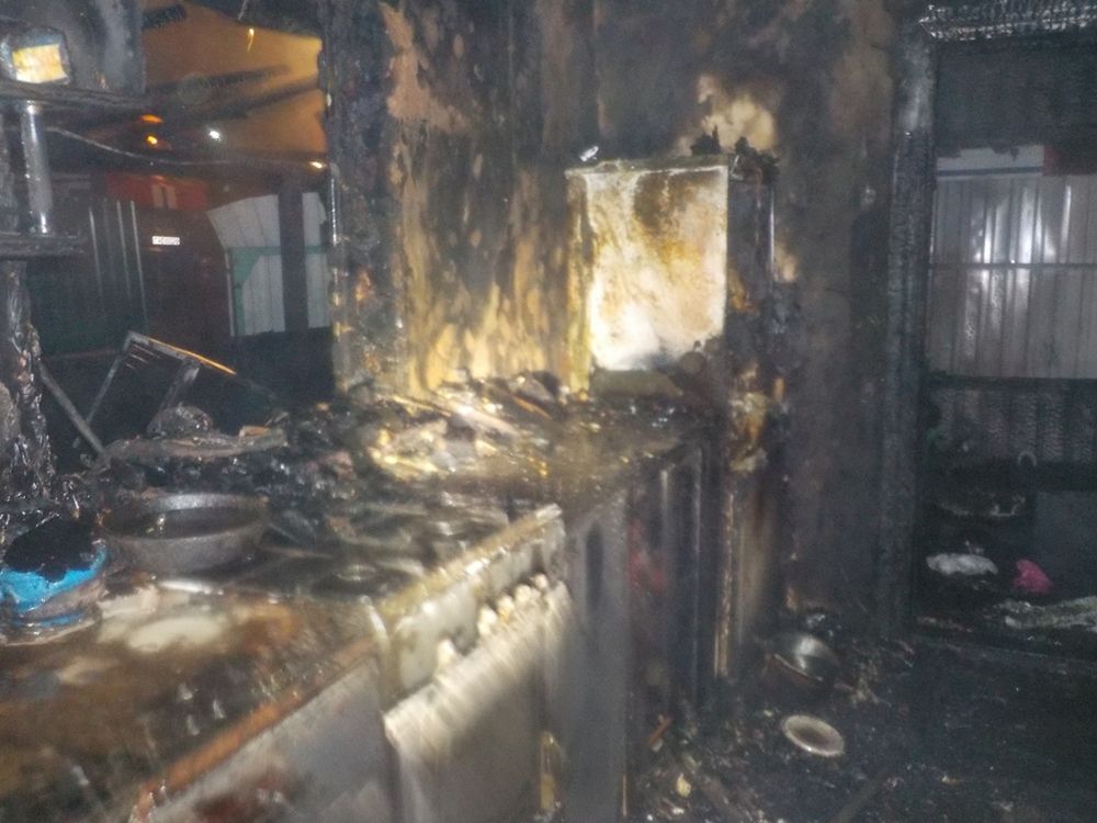 В результате пожара уничтожена веранда, повреждена кухня, часть кровли и имущество в доме, обуглены стены.
