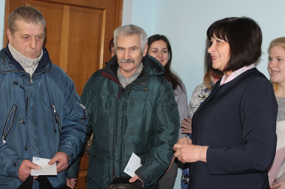 Теплых слов от коллектива «Михалевской Нивы» в лице заместителя руководителя организации Елены Пациенко удостоились ветераны Афганистана, однофамильцы Юшкевичи — Валерий и Леон, которые также получили денежные премии на «фронтовые сто граммов».