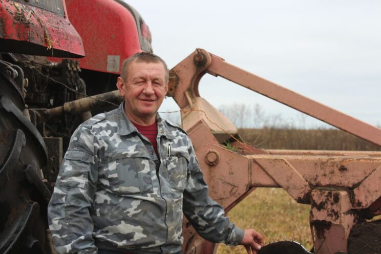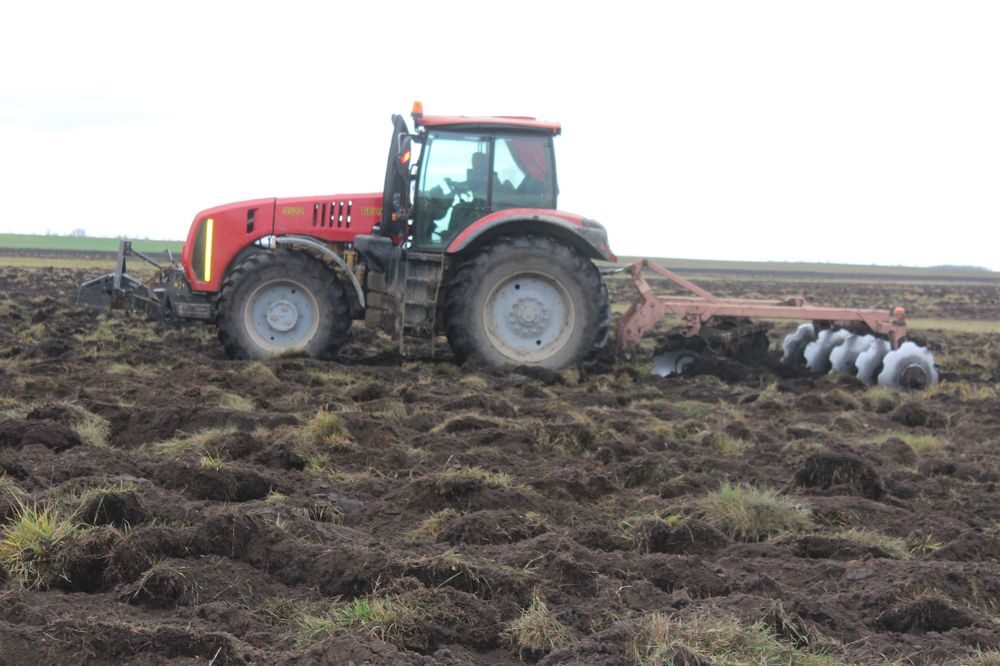 Восеньскай апрацоўкай глебы на новым (у рабоце другі год) трактары МТЗ-3522 з ППА-9,45 займаўся Сяргей Анатольевіч Кафідаў. На суседнім, больш нізкім полі, — на такой жа тэхніцы з дыскаплугам працаваў Юрый Яўгенавіч Арцёменка.