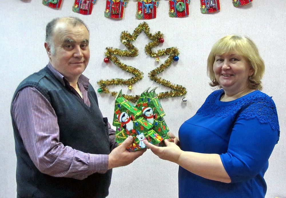 Татьяна Васильевна, в свою очередь, передала подарки Степану Степаняну, заведующему отделением круглосуточного пребывания граждан пожилого возраста и инвалидов. Во время праздничного мероприятия, посвященного встрече Нового года, каждый постоялец отделения получит красочно оформленный пакет со сладостями и, конечно, частичку душевной теплоты членов районных организаций РОО «Белая Русь» и Белорусского фонда мира.