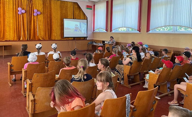 Работники МЧС повторили с ребятами правила безопасного поведения во время летних каникул. Мальчишки и девчонки научились: алгоритму вызова спасателей, правилам поведения при пожаре в квартире или в доме, вместе прошли пять шагов спасения. Запомнили, что купаться разрешено только в специально оборудованных местах и в сопровождении взрослых. С удовольствием посмотрели мультфильмы МЧС «Волшебная книга» и установили на свои телефоны мобильное приложение «МЧС Беларуси: Помощь рядом». На прощание спасатели порекомендовали ребятам выписать журнал «Юный спасатель» и принимать участие в проводимых журналом конкурсах. Кульминация встреч – беседа с трудовыми коллективами.