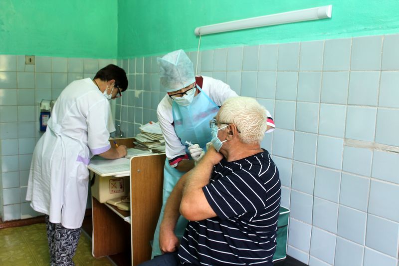 Сделать прививку мог каждый желающий, вне зависимости от пола, возраста, места проживания, в порядке живой очереди после тщательного медосмотра. Доктор спрашивал у пациента о наличии у него хронических заболеваний, аллергических реакций на медпрепараты, общем самочувствии, а также измерял давление, сатурацию, температуру тела, осматривал состояние слизистых носа, горла. Только после обследования каждый человек получал «добро» на вакцинацию. Как рассказали нам во врачебном кабинете, несколько человек по состоянию здоровья не были допущены к проведению прививки, они еще будут обследованы позже, и после улучшения состояния здоровья получат разрешение на эту процедуру.