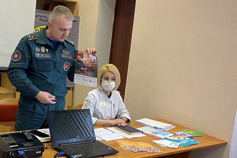 Андрей Вячеславович заострил внимание на важных вопросах: коснулся отопительного периода, неосторожности при курении, детской безопасности. Спасатель также напомнил про мобильное приложение «Помощь рядом», благодаря которому можно черпать много полезной информации. Рассказал про информационную кампанию от МЧС «Безопасная старость», которая призывает позаботиться о престарелых родителях и их безопасности. В завершение встречи работники МЧС раздали присутствующим наглядно-изобразительную продукцию для информационных стендов.
