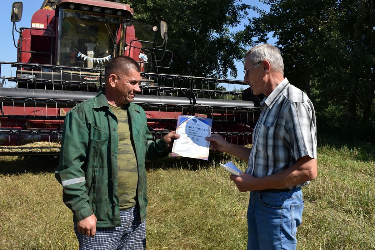 — Достойный труд не должен оставаться незамеченным. Мне очень приятно поздравить вас с высокими достижениями, вручить Благодарность от Совета Могилевского областного объединения профсоюзов и денежную премию, — сказал Геннадий Олегович, пожимая руку комбайнеру.