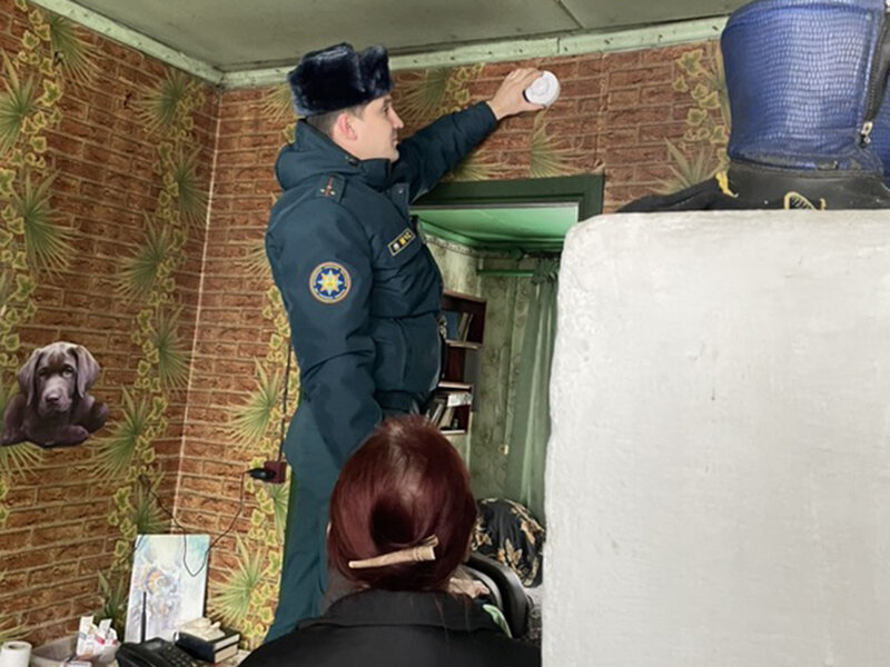 Одиноким пенсионерам спасатели помогли установить АПИ на потолок и стену, напомнив при этом, что периодически извещатели нужно очищать от пыли и менять батарею.