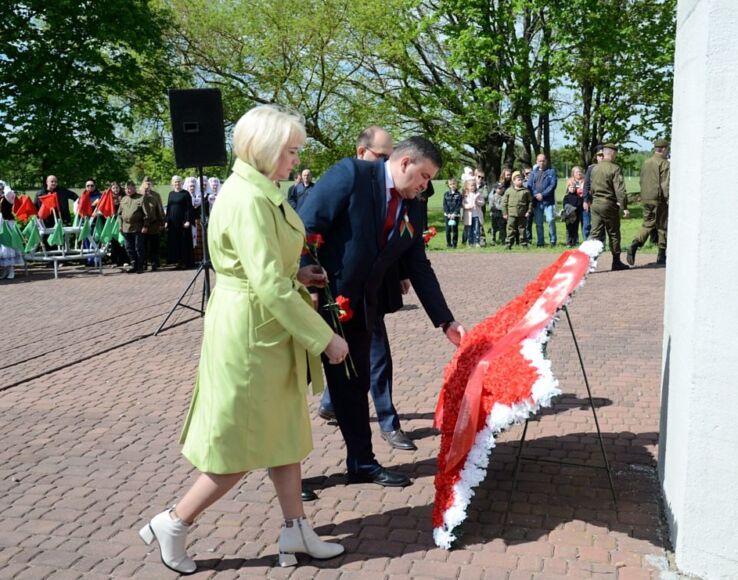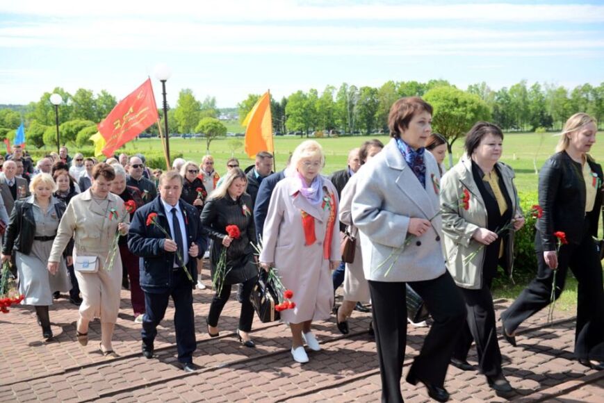От триумфальной арки до мемориального комплекса «Курган Славы» состоялось праздничное шествие, затем у подножия кургана — торжественный митинг. Жители и гости Бобруйщины, работники организаций и предприятий района пришли сюда, чтобы возложить цветы к святому для всех жителей Приберезинского края месту, вспомнить своих близких, ковавших Победу, и исполнить песни военных лет.