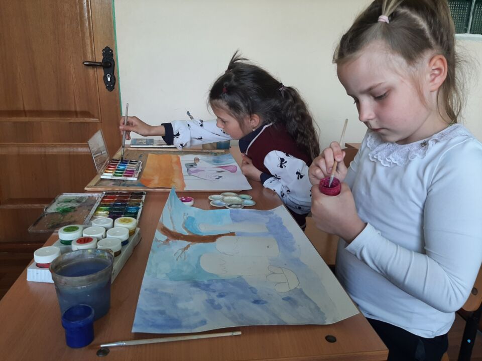 Юные художники создавали свои рисунки под руководством учителей Инны Савич и Ксении Гришановой.