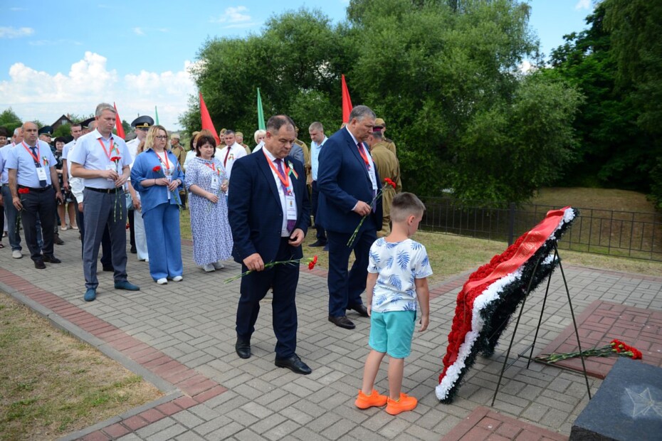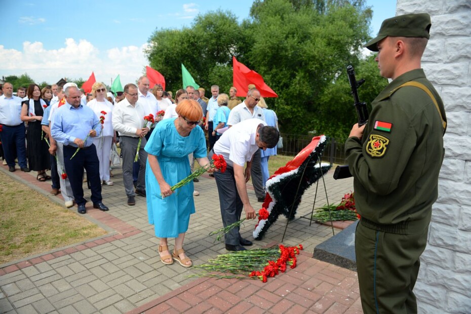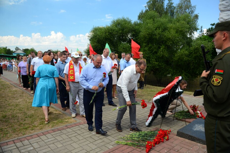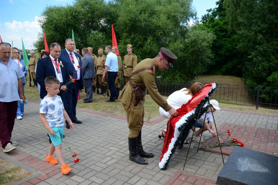 Поздравил присутствующих председатель Бобруйского районного исполнительного комитета Александр Суходольский. Он отметил, что 29 июня — значимый день для каждого жителя Приберезинского края: «Мы идем к священным местам, чтобы выразить глубокую признательность тем, кто в жестоких сражениях отстоял честь и независимость родной земли. Человек живет, пока помнит. Помнит о людях, которые ценой своей жизни проложили дорогу в будущее».