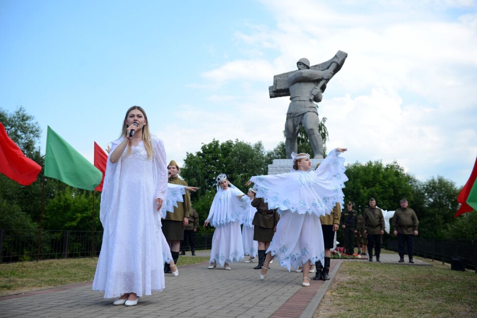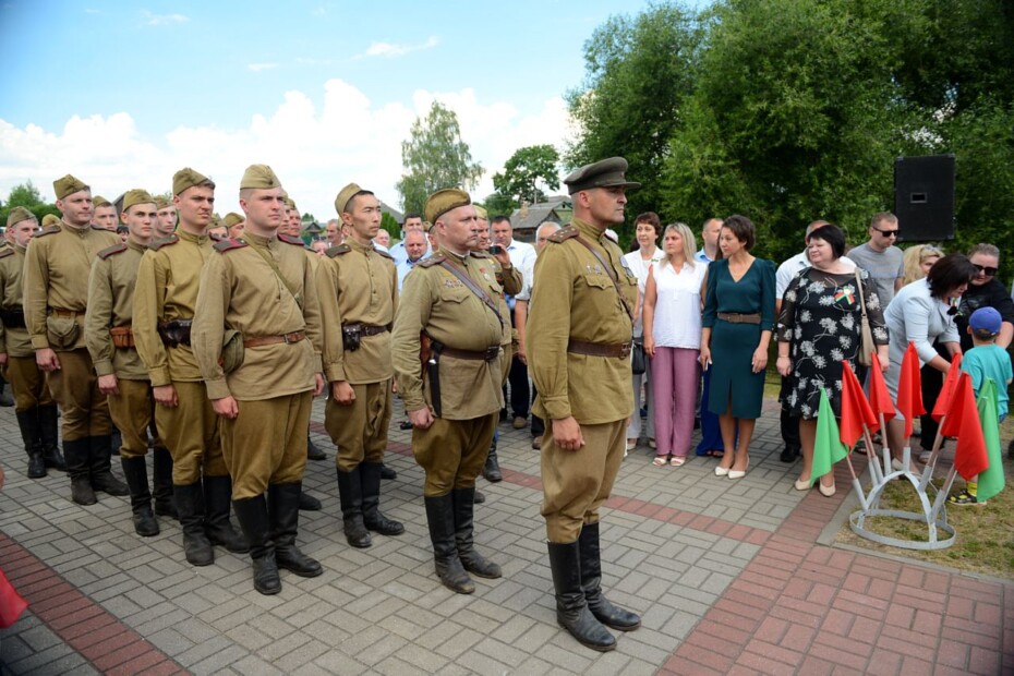 В рамках митинга участники возложили цветы и венки к мемориалу. Минутой молчания присутствующие почтили память тех, кто так и не вернулся с фронта — героев, отдавших за свободу родной Беларуси самое дорогое — жизнь.