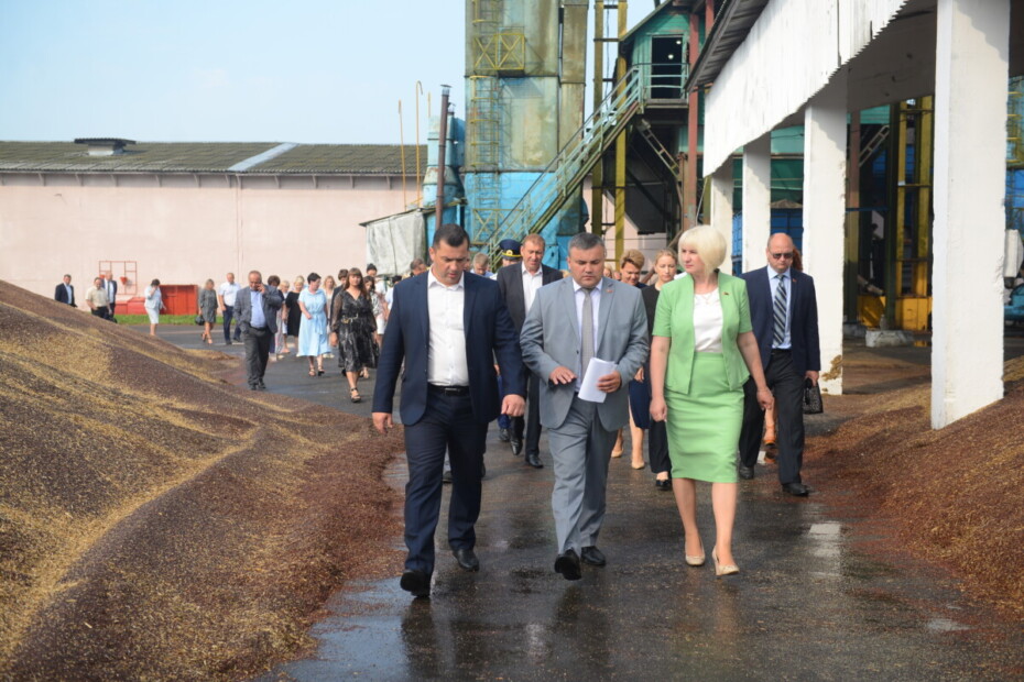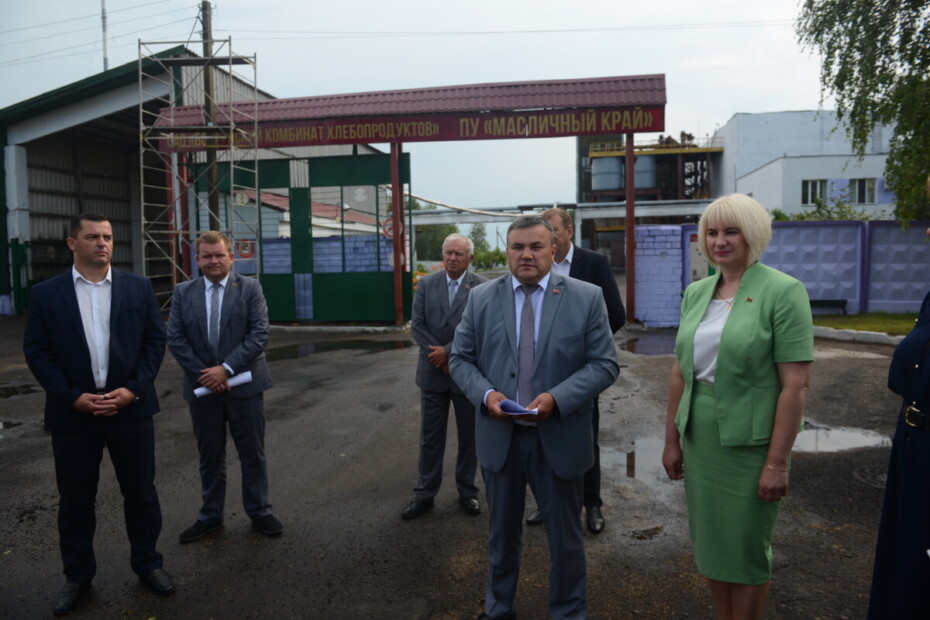 Началось заседание с посещения производственного участка «Масличный край» ОАО «Бобруйский комбинат хлебопродуктов», расположенного в аг. Химы. Директор комбината хлебопродуктов Валерий Пташиц и начальник производственного участка Владимир Клинов рассказали о работе предприятия, планах и задачах на перспективу.