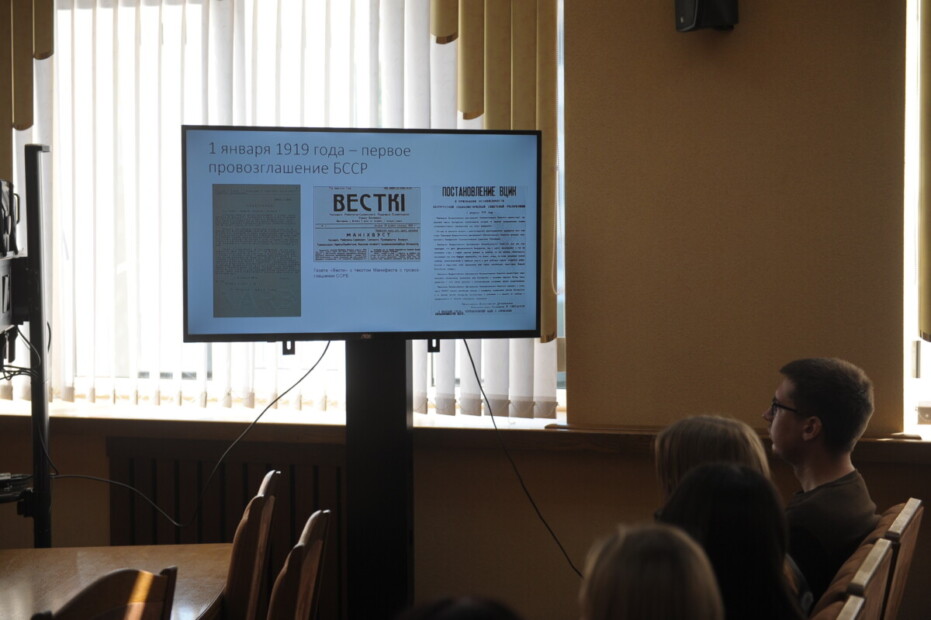 Галоўны спецыяліст аддзела ідэалагічнай работы і па справах моладзі райвыканкама Сяргей Сарокін распавёў маладым спецыялістам, чаму Днём народнага адзінства стала менавіта 17 верасня і што значыць гэтая дата ў гісторыі Беларусі.