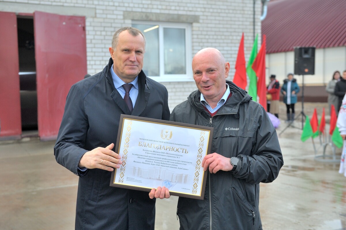 Долгожданное торжество с работниками хозяйства разделили Анатолий Исаченко, председатель Могилевского облисполкома, Сергей Савицкий, первый заместитель председателя облисполкома, Александр Суходольский, глава Бобруйского района, члены райисполкома, руководители сельхозпредприятий и строительных организаций, представители трудовых коллективов.