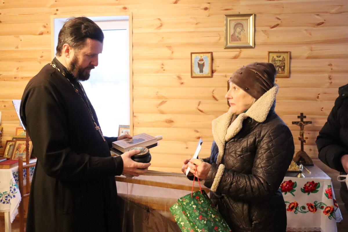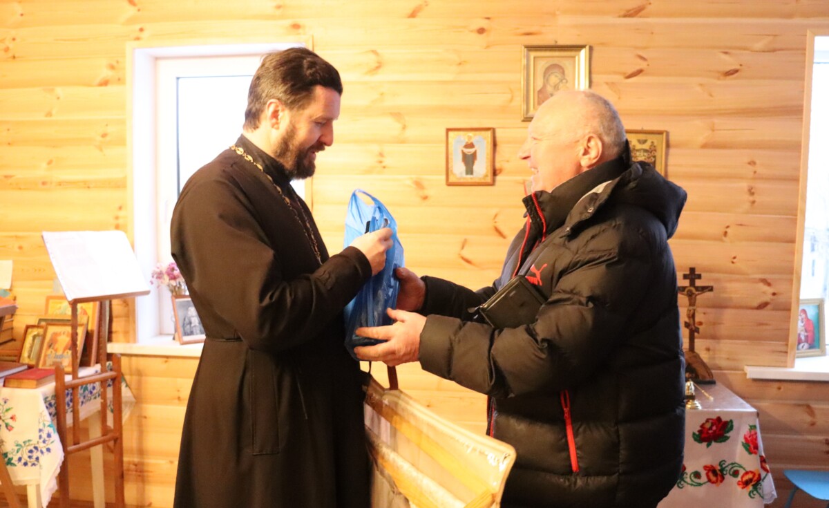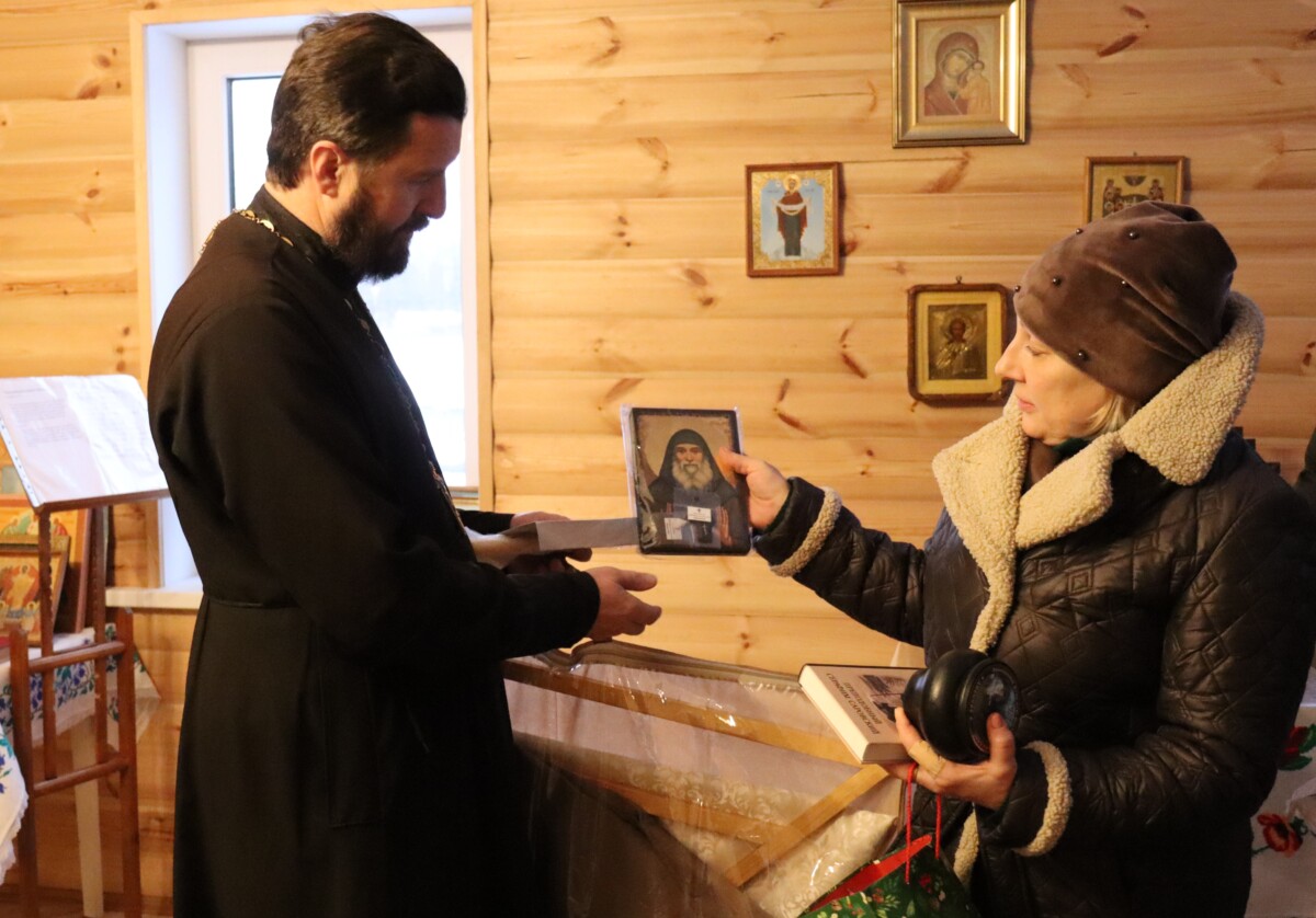 В канун великого праздника Рождества Христова гости передали от отца Андрея Лемешонка, духовника Свято-Елисаветинского монастыря, — праздничное облачение для настоятеля местного храма иерея Сергия Яромича.