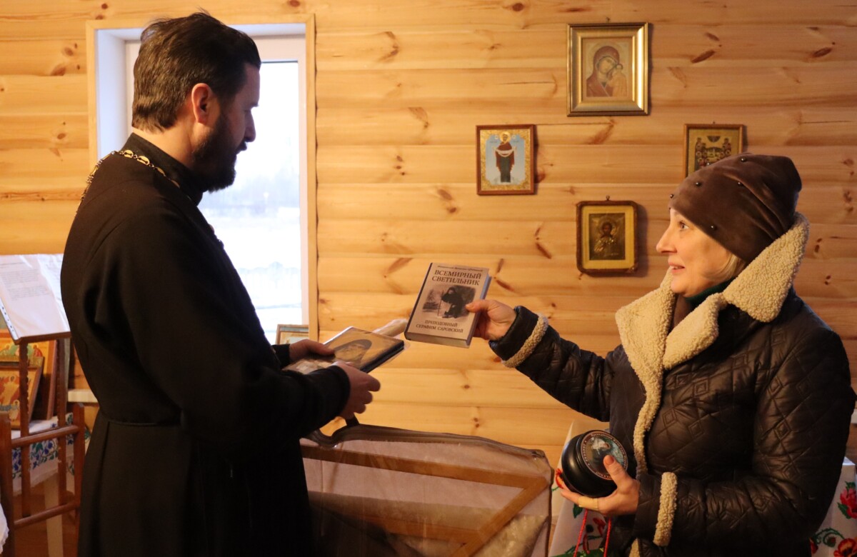 Также гости привезли книгу о Серафиме Саровском, праздничные свечи и ткани для изготовления церковной утвари.