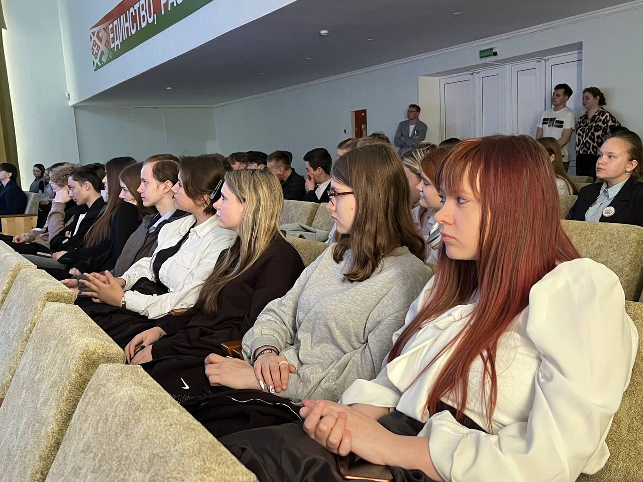 Внимание юношей и девушек приковал креативный формат видеофильма, наглядно показавший, какая жизнь ждет тех, кто решить стать частью именитого учреждения культурной столицы Беларуси.