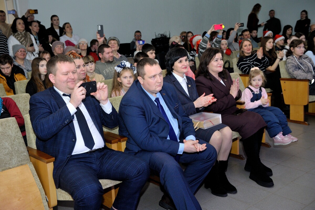 В зале присутствовали председатель районного исполнительного комитета Михаил Крицкий, его первый заместитель Александр Кавранин и заместитель Татьяна Воронко. Открыли праздник Дед Мороз и Снегурочка, которые передали эстафету совместному задорному выступлению детских творческих коллективов.