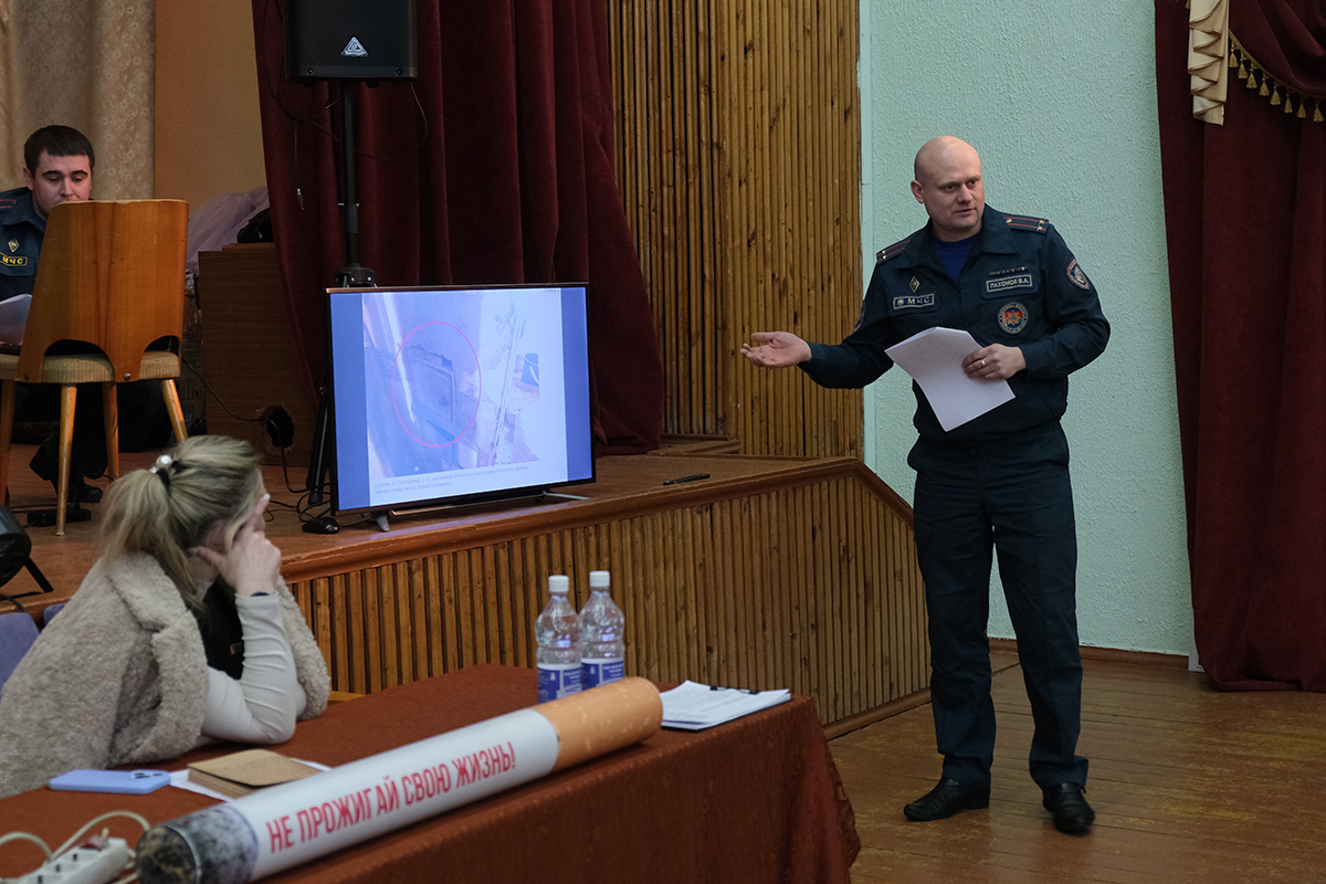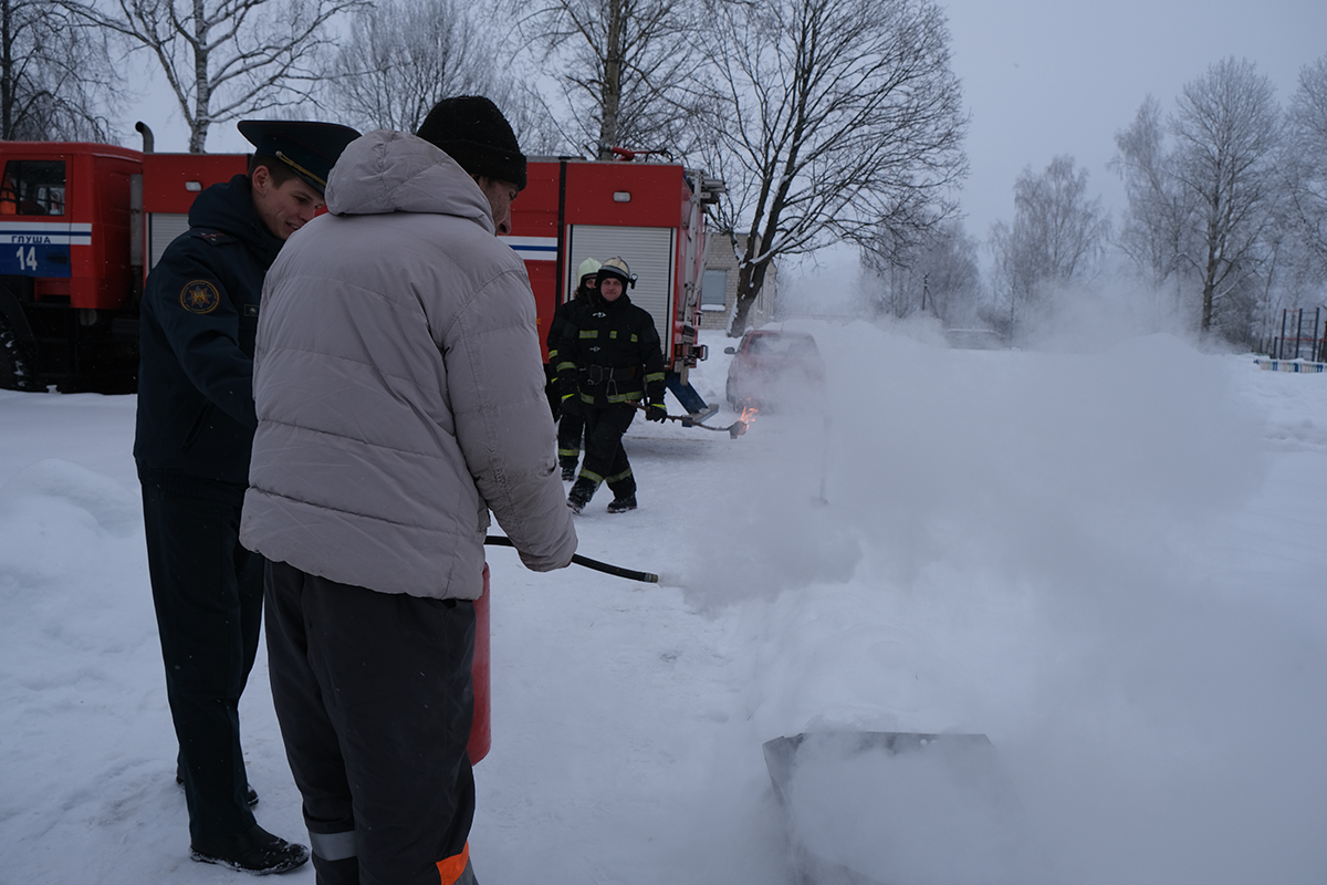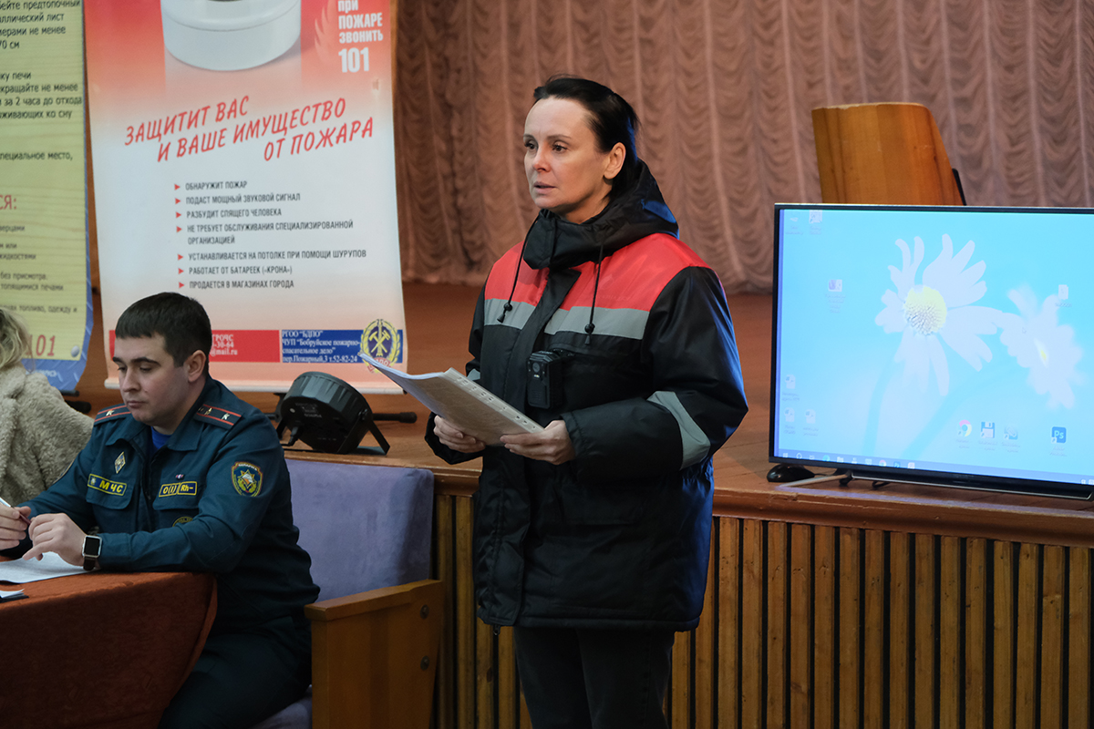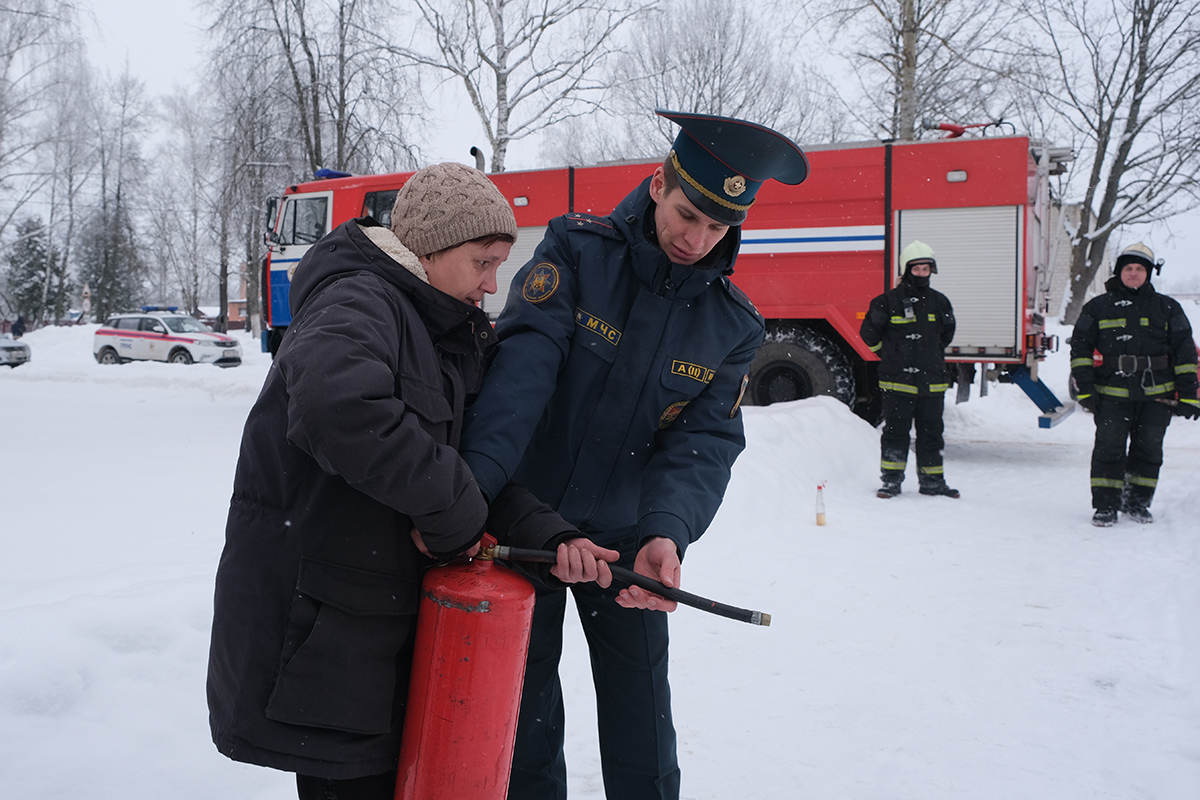 Заместитель начальника горрайотдела по ЧС Владимир Пахомов отметил, что в зимний период опасно перекаливать печи, важно пропорционально протапливать печи и не доверять топку детям. Также спасатели показали, как простым порошковым огнетушителем помочь себе при возгорании.