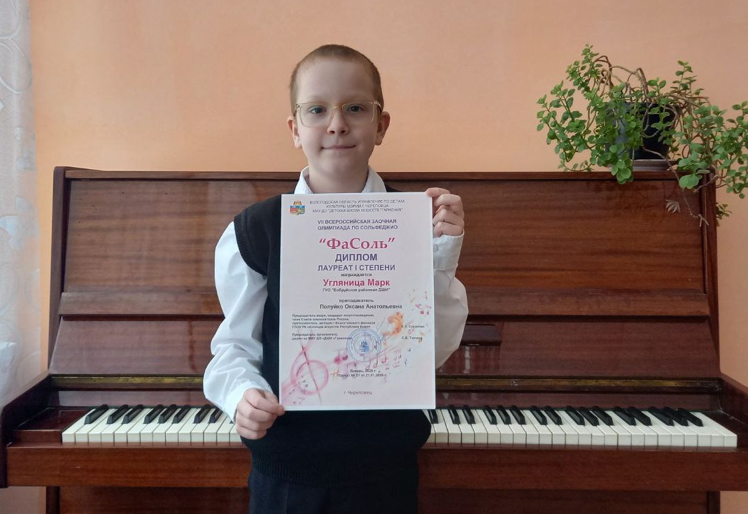 На VII Всероссийской олимпиаде по сольфеджио «ФаСоль» (г. Череповец Вологодской области) по результатам выполненных заданий Марк Угляница (классы аг. Михалево, учитель О. А. Полуйко) также стал обладателем диплома лауреата 1 степени.