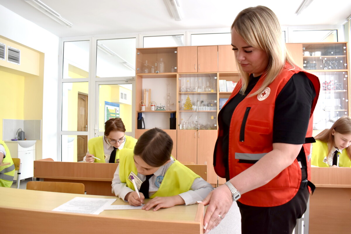 Затем прошла жеребьевка. Юные инспекторы заняли отведенные для различных этапов площадки. В одном из кабинетов проходил теоретический экзамен на знание ПДД. Рядом в помещении демонстрировались навыки по оказанию первой медпомощи.