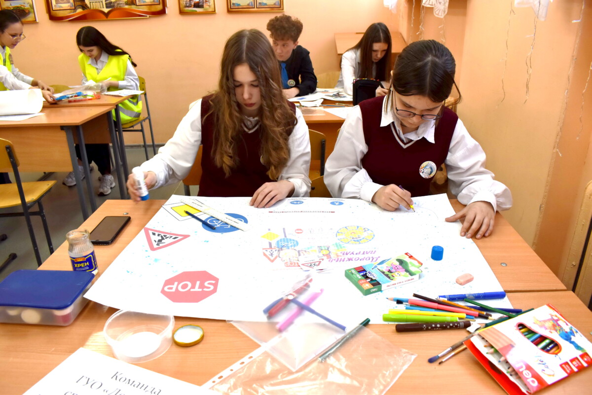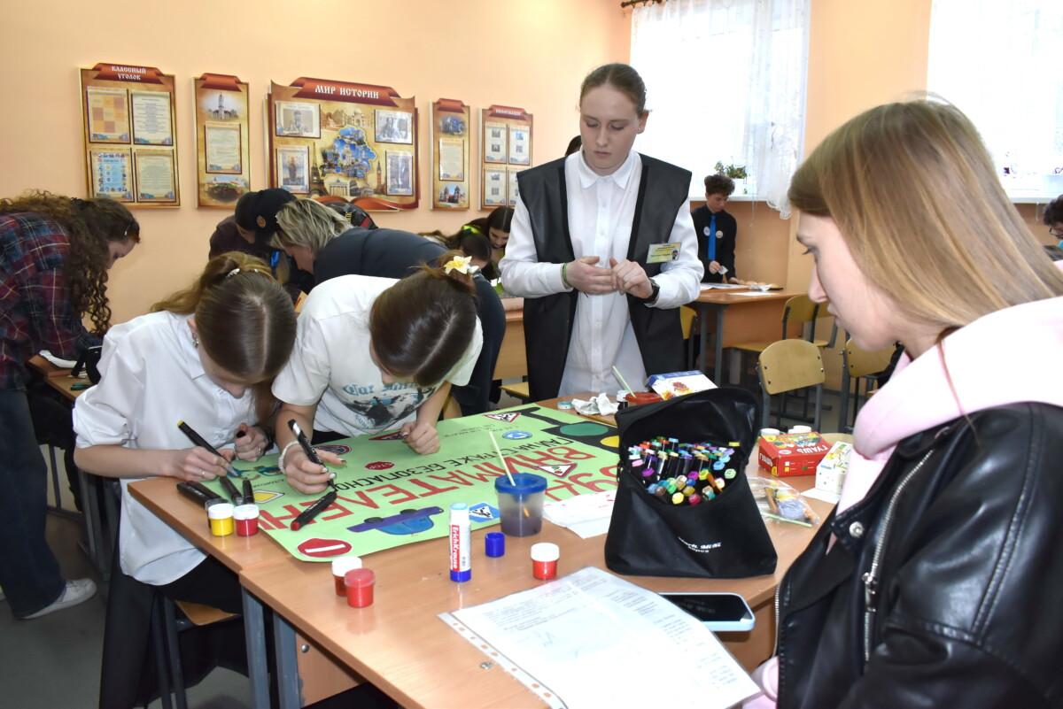 В кабинете на первом этаже юные художники-конкурсанты создавали плакаты социальной рекламы по безопасности дорожного движения.