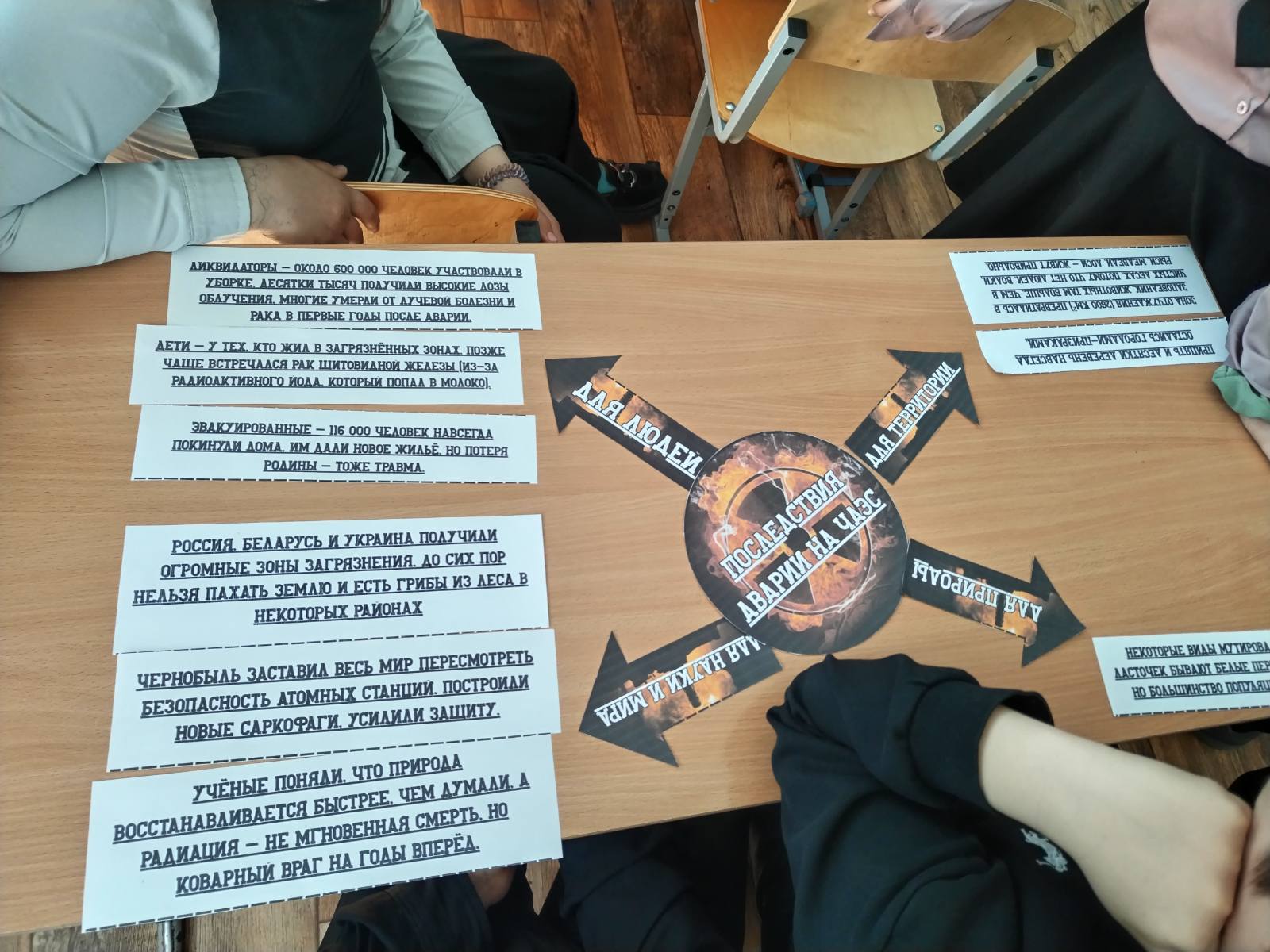 С ребятами обсуждали не только подвиг ликвидаторов — строителей, пожарных, военных и специалистов, многие из которых рисковали здоровьем и жизнью, но и напоминают о важности строгого соблюдения норм промышленной безопасности, регулярного контроля оборудования и готовности к чрезвычайным ситуациям. На примере Чернобыля показано, к чему приводят халатность и недооценка рисков.