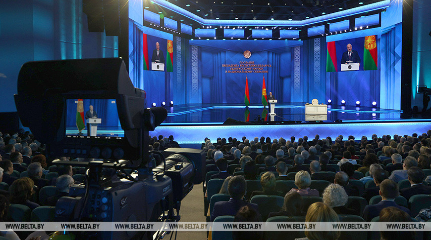 Президент Беларуси Александр Лукашенко обращается с ежегодным Посланием к белорусскому народу и Национальному собранию, передает корреспондент БЕЛТА.