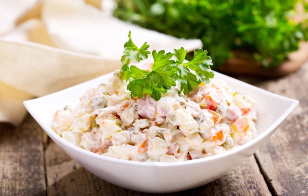 Диетолог рассказал, чем заменить майонез и колбасу в «Оливье»