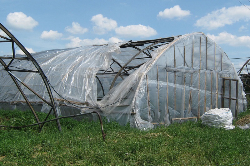 Ветер повредил кровлю фермы и покрытие теплиц