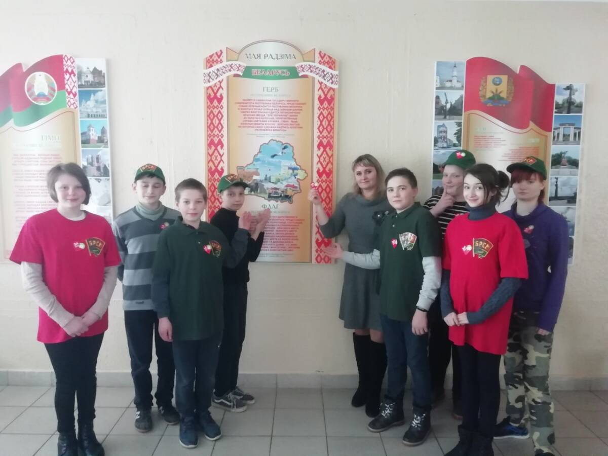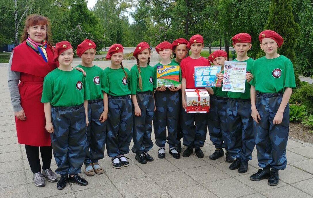 Пионерская дружина им. Ф. Шароварова Каменской средней школы в сопровождении председателя районного комитета БРПО Цетра творчества Бобруйского района Алеси Малюковой...